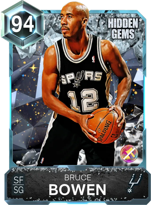 Bruce Bowen, en ulaşılabilir elit şutör gard seçeneği. Pro Pass alan herkes, Seviye 37 ödülü olarak onu garantili olarak kazanıyor; bu da onu en yaygın üst seviye SG yapıyor. Kendisi, 2.01 m boyu ve 2.11 m kanat açıklığıyla tam bir savunma duvarı. 94 üçlük ratingi ve Hall of Fame Limitless rozetiyle güvenilir skor katkısı sağlıyor.